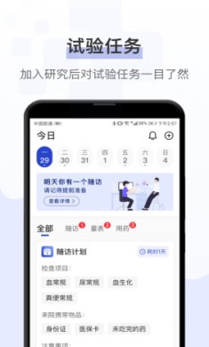 5、报名成功后打开试验首页,查看其中的计划数据或查看最近随访计划安排