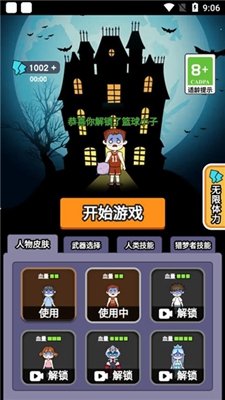 2、根据自身情况选择皮肤或者升级技能后,点击开始游戏