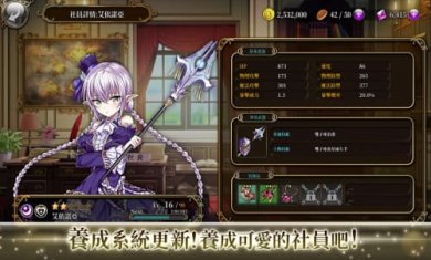 企业少女游戏是一款纯日系风格的游戏,整体的结构与搭配与命运长夜这些游戏相识,整体的UI结构偏向于百万的亚瑟王,是一款不可多得的游戏,日系游戏一向是世界顶级的游戏,在2012-2013的时候就上线了,在当时的年代,与现代,都是顶级的产物。