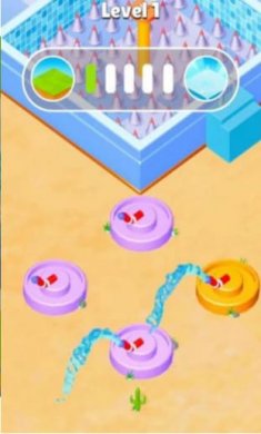 水的3D拼图游戏,在游戏之中你需要去给游戏中的水池灌满水,好方便玩家们进入水池之中游玩,整体的效果与玩法都较为简单,你只需要在点击进入游戏后,观察水管的动态,然后调整水管来进行操作,难度不大,可玩性却十分的不错。
