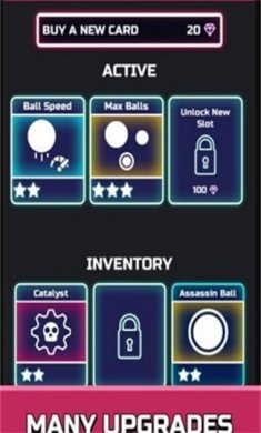 2、升级每个球的速度和力量,收集卡片为您的游戏提供巨额奖金。