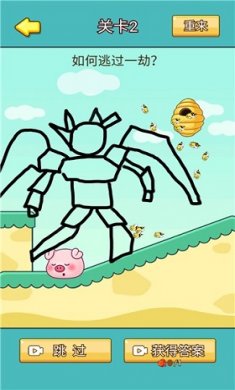 1、挑战起来很轻松简单,根据你的画线,保护好小猪猪。