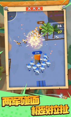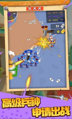 一款超级有趣的排兵布阵的战争策略游戏。玩家扮演岛上总指挥官,需要就地建立兵营和快速招募士兵。通过游历四方捡取金银财宝,升级武器和兵营防御力,从而击退敌军士兵和攻打敌军兵营,无限子弹,无限武器,给玩家带来不一样的全新体验。
