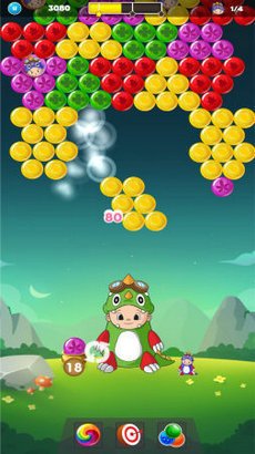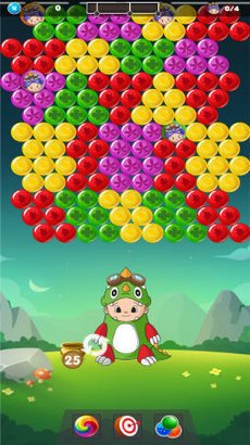 不断进行射击,消除大量的泡泡,拯救场景中的宝宝,越多越好。