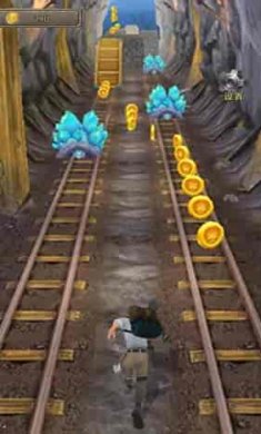 3、逃离这座古庙跑酷冒险,操控愣子躲开障碍物向前冲。