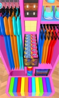 2、衣柜的大小也是会随着关卡改变的,合理利用空间来将所有衣服全部摆放整齐。