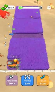 割草与合并游戏,去熟悉游戏的整体玩法,色彩的渲染感很是不错,割草的道具,去收集你的金币进行兑换,去不断的挑战新的关卡,体验解压的玩法,可玩性极佳,去提升你的机器情况,去赚取金币来解锁全新的机器人,快来游玩下载吧。