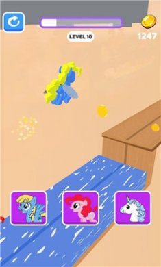 2、玩家需要引导小马跳跃、转向和发射大招,避开各种障碍物,在途中收集金币和道具。