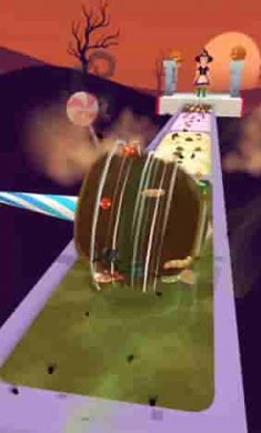 3、奔跑过程中控制方向就行,注意前方道路中的危险,敏捷的操作棉花糖去躲避。