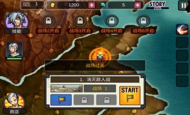 4、升级英雄去增加技能在库存中存储物品,在一定的范围内角色会自动攻击敌人;