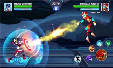 动作英雄无限战斗游戏,原名是“StickmanFighterInfinity”是国外的游戏开发商制作的一款横版格斗闯关类游戏,游戏的背景是根据著名漫威复仇者联盟与火柴人系列改编的,让玩家们可以在这类去操控着漫威英雄火柴人在游戏的世界里战斗。
