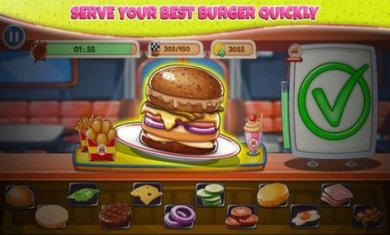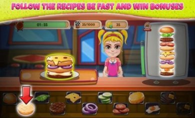 1、卡通风格的趣味经营游戏,拥有多种炸鸡汉堡,还可以开发新的食谱;