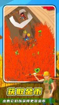 3、收割大师:疯狂割草是主打模拟经营玩法的手游,可以收集各种可爱的萌宠进行养成。