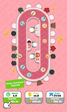 旋转寿司烹饪是一款以战争旋转寿司为题材的模拟经营类游戏,在这款旋转寿司烹饪游戏中,玩家将成为一名旋转寿司店的厨师,运用自己的烹饪技巧来制作美味的寿司。努力经营自己的店铺,做大做强吧。