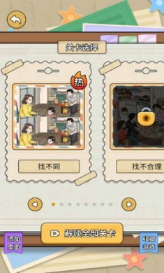 不仅操作简单还能提高观察力,找出所有的不同,你能找到几处?是一个特别考眼力的休闲益智小游戏,整个画面设计的特别的清新,内置的这些关卡也特别的海量,这些图片设计的也特别的高清,我们要仔细的去观察找出不同之处,而且在每个关卡里面都是有时间限定的,特别的有挑战性。
