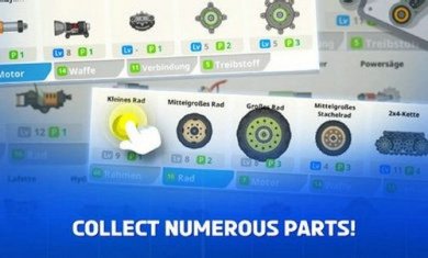 1、根据不同的场景和敌人,选择合适自己的零部件来组装战车,争夺战斗的胜利;