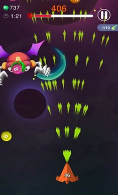 2、简单的控制方式,通过触摸屏幕即可控制飞船的移动和发射子弹,让玩家可以轻松上手。