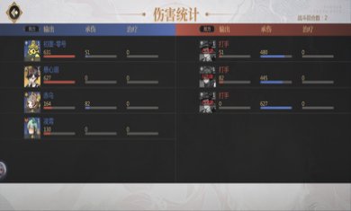玩家在结算界面能够仔细的查看每一个角色的伤害及功能数值。