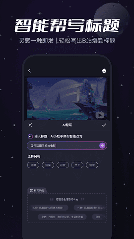 一键投稿功能:支持投稿免流量和B站账号互通,方便用户快速将剪辑好的视频投稿到B站平台。