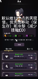 默认给10个点的天赋值,优先加移动(保生存)和冷却(减少技能CD)