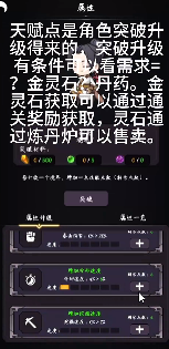 天赋点是角色突破升级得来的,突破升级有条件走以看需求=?金灵石,丹药。金灵石获取苛以通过通关奖励获取,灵石通过炼丹炉可以售卖。