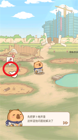 2、点击如图土地开垦种植萝卜,解决温饱问题
