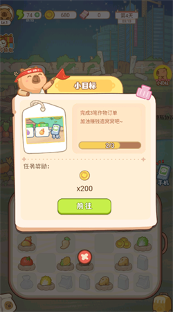 1、合成订单,格子当中合成。完成一个订单就有金币赚